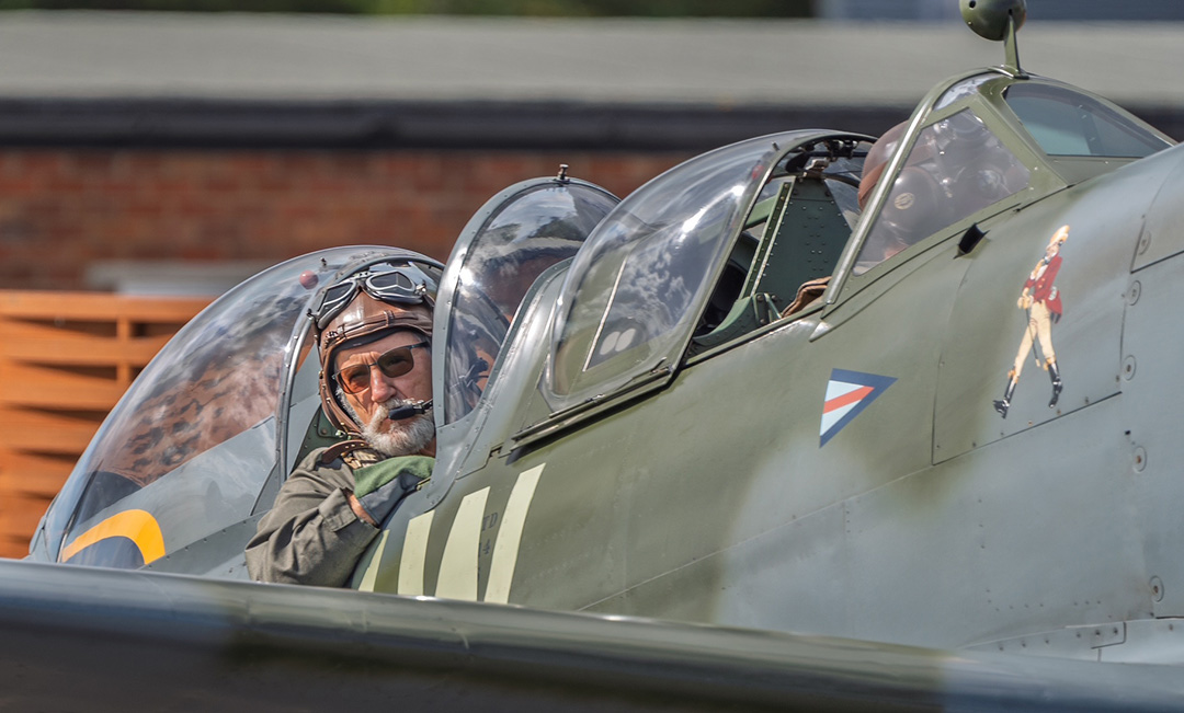 Longhorn Skip Slyfield at the Stick of an Mk IX Spitfire